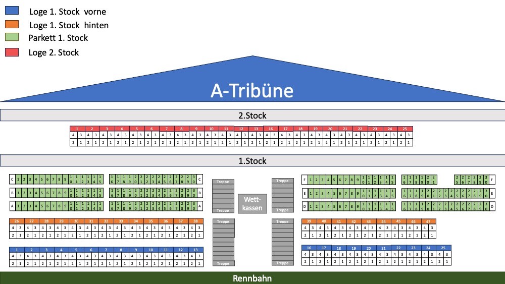 - Bereich in der Rennbahnansicht anklicken (bei Loge/Parkett Sitzplatz auswählen)